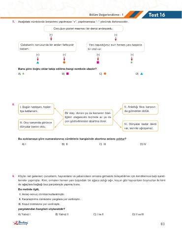 7. Aşağıdaki cümlelerde benzetme yapılmışsa “+”, yapılmamışsa “–” yönünde ilerlenecektir.