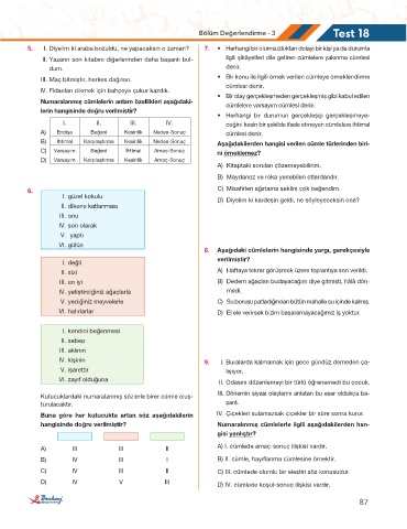 D) IV V III D) IV. cümlede koşul-sonuç ilişkisi vardır.