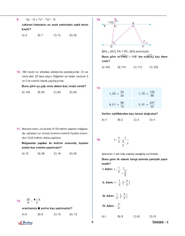 10. 180 cevizi üç arkadaş aralarında paylaşıyorlar. En az