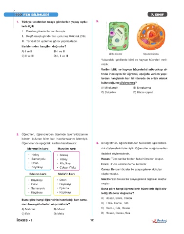 • Samanyolu • Ejderha Buna göre hangi öğrencilerin hücrelerle ilgili söy-