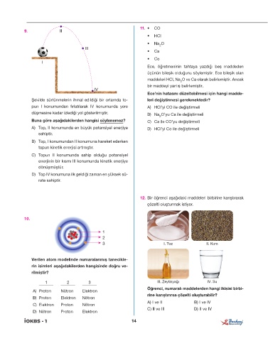 A) Top, II konumunda en büyük potansiyel enerjiye D) HCl’yi Co ile değiştirmeli