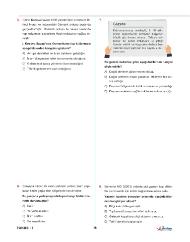 5. Birinci Kosova Savaşı 1389 yılında Haçlı ordusu ile Bi- 7.
