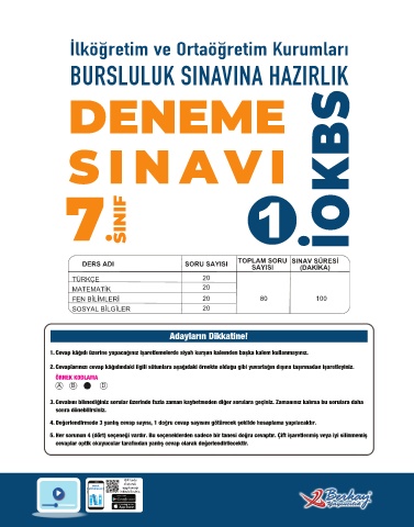 cevaplar optik okuyucular tarafından yanlış cevap olarak değerlendirilecektir.