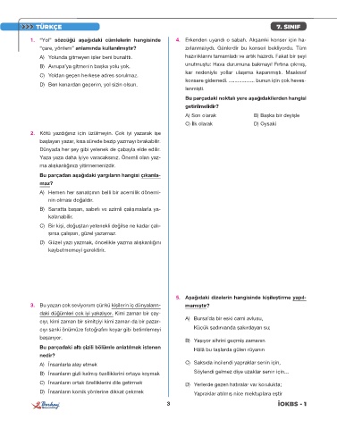 1. “Yol” sözcüğü aşağıdaki cümlelerin hangisinde 4. Erkenden uyandı o sabah. Akşamki konser için ha-
