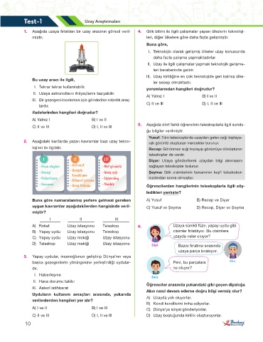 5. Aşağıda dört farklı öğrencinin teleskoplarla ilgili sundu-