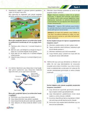 B) Uzay istasyonlarından uzay gözlemi yapılabilir. C) Su arıtma cihazı Dünya’daki su kaynaklarının tüketi-