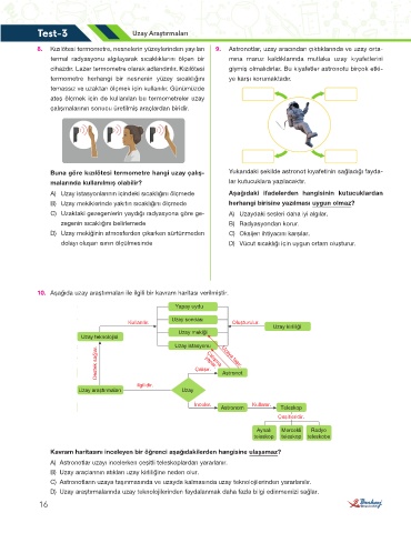 8. Kızılötesi termometre, nesnelerin yüzeylerinden yayılan 9. Astronotlar, uzay aracından çıktıklarında ve uzay orta-