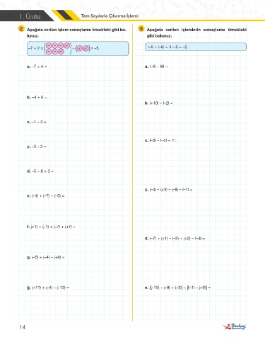 1. Ünite Tam Sayılarla Çıkarma İşlemi