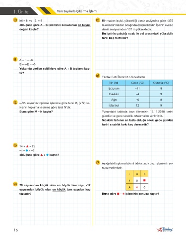 10 |A| = 8 ve |B| = 9 15 Bir maden işçisi, yüksekliği deniz seviyesine göre –375