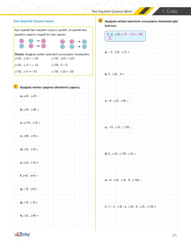 Tam Sayılarla Çarpma İşlemi 1. Ünite