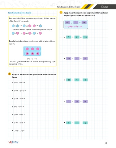 Tam Sayılarla Bölme İşlemi 1. Ünite