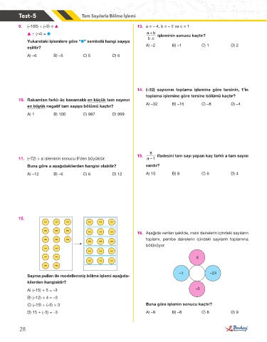 9. (–100) ÷ (–5) = s 13. a = – 4, b = – 2 ve c = 1