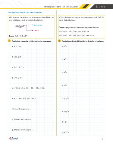 Tam Sayıların Pozitif Tam Sayı Kuvvetleri 1. Ünite