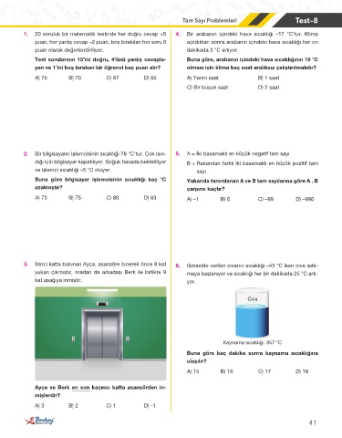 1. 20 soruluk bir matematik testinde her doğru cevap +5 4. Bir arabanın içindeki hava sıcaklığı –17 °C’tur. Klima