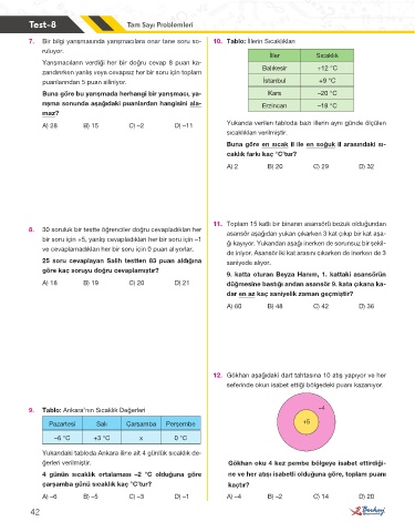 7. Bir bilgi yarışmasında yarışmacılara onar tane soru so- 10. Tablo: ‹llerin S›cakl›klar›