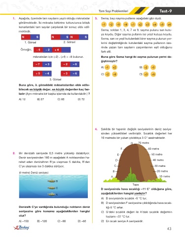 1. Aşağıda, üzerinde tam sayıların yazılı olduğu mıknatıslar 3. Sema, bazı sayma pullarını aşağıdaki gibi dizdi.