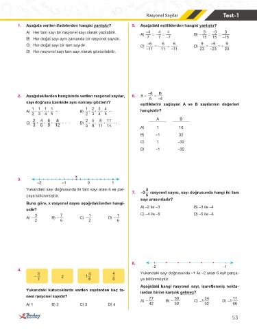2. Aşağıdakilerden hangisinde verilen rasyonel sayılar, 6. 8 = A = – 4