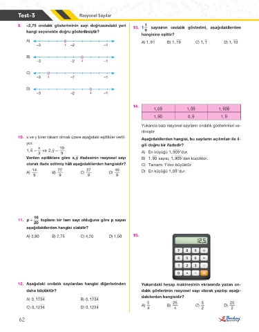 9. –2,75 ondalık gösteriminin sayı doğrusundaki yeri 13. 1 sayısının ondalık gösterimi, aşağıdakilerden