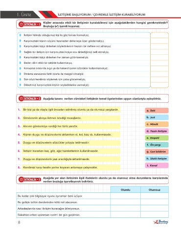 1. Ünite İLETİŞİME BAŞLIYORUM / ÇEVREMLE İLETİŞİM KURABİLİYORUM