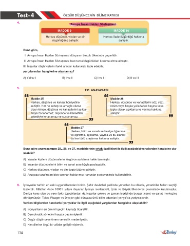 Test-4 ÖZGÜR DÜŞÜNCENİN BİLİME KATKISI