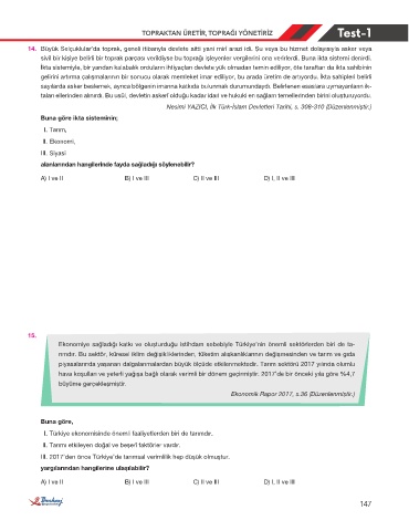 14. Büyük Selçuklular’da toprak, geneli itibarıyla devlete aitti yani mirî arazi idi. Şu veya bu hizmet dolayısıyla asker veya