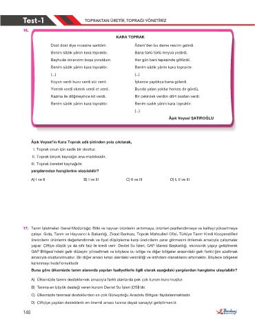 Test-1 TOPRAKTAN ÜRETIR, TOPRAĞI YÖNETIRIZ
