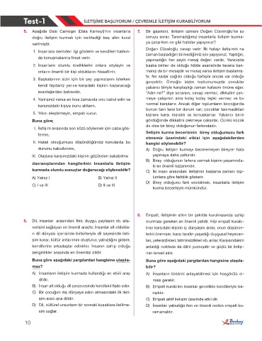6. Dil, insanlar arasındaki fikir, duygu, paylaşım vb. alış- olunması gereken en önemli yetidir. Kişi empati kurabi-