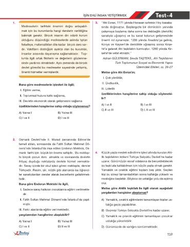 I. Sadece saray halkının cocuklarına eğitim verilmekte-     Metne göre Ahilik teşkilatı ile ilgili olarak aşağıdaki