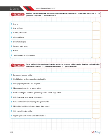 den olumlu olanlara “”, olumsuz olanlara da “” işareti koyunuz.