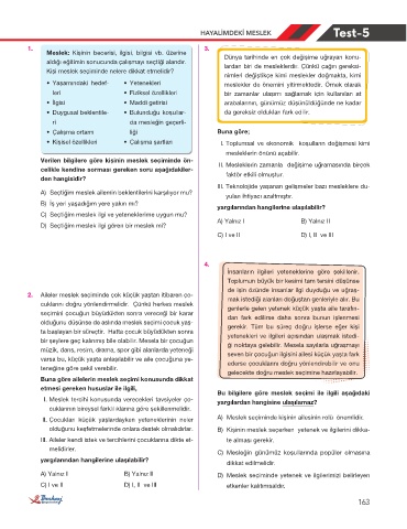 Verilen bilgilere göre kişinin meslek seçiminde ön-     II. Mesleklerin zamanla  değişime uğramasında birçok