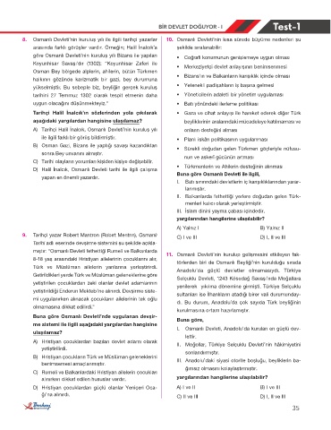8. Osmanlı Devleti’nin kuruluş yılı ile ilgili tarihçi yazarlar 10. Osmanlı Devleti’nin kısa sürede büyüme nedenleri şu