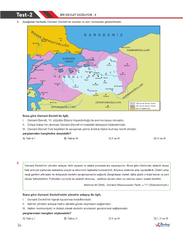 Buna göre Osmanlı Devleti’ndeki yönetim anlayışı ile ilgili,