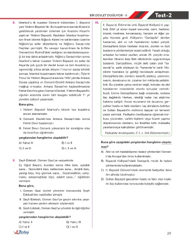 vermiştir. D) Sultan Bayezid gerçekten hasta ve fakir olan kişile-