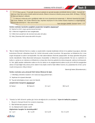 7. “İstanbul’un fethi dönemin şartları göz önüne alındığında bir zorunluluktur.” diyen bir tarihçi bu yargısını;