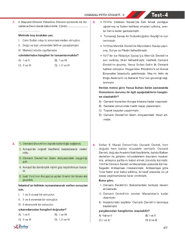 2. 1. Osmanlı Devleti’nin toprak bütünlüğü sağlandı. 4. Sultan II. Murad Dönemi’nde Osmanlı Devleti, hem