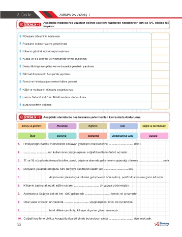 2. Ünite AVRUPA’DA UYANIŞ - I