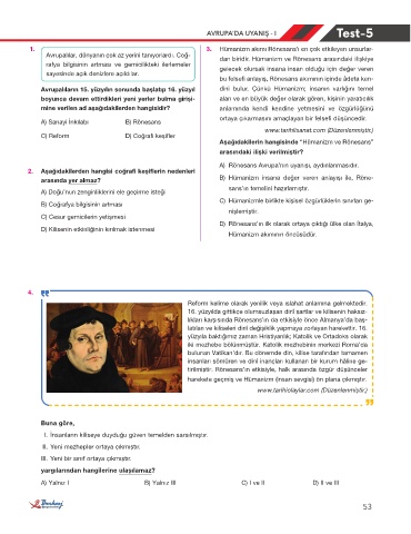 1. 3. Hümanizm akımı Rönesans’ı en çok etkileyen unsurlar-