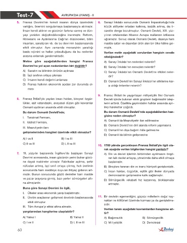 7. 19. yüzyılın başlarında İngiltere’de başlayan Sanayi A) Din ve devlet işlerinin birbirinden ayrılmasını öngö-