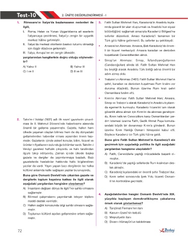 1. Rönesans’ın İtalya’da başlamasının nedenleri ile 3. Fatih Sultan Mehmet Han, Karadeniz’in Anadolu kıyıla-