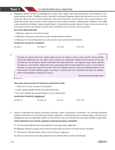 4. Bilgisayarın tarihteki serüvenine bakıldığında en büyük etkisi, bilginin kayıt altına alınmasında, korunmasında ve yay-