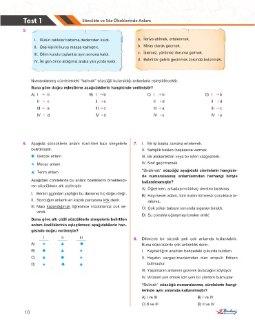 Test 1 Sözcükte ve Söz Öbeklerinde Anlam