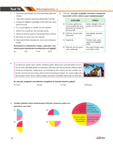 1. • Söylemek istemediyse de sonunda baklayı ağzından 2. “Örtmek” sözcüğü aşağıdaki cümlelerin hangisinde
