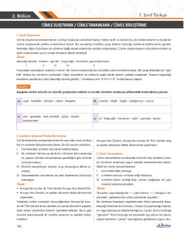III. Birbirini destekleyen ifadeler olup olmadığına dikkat et- Eksik bir cümle tamamlanırken;