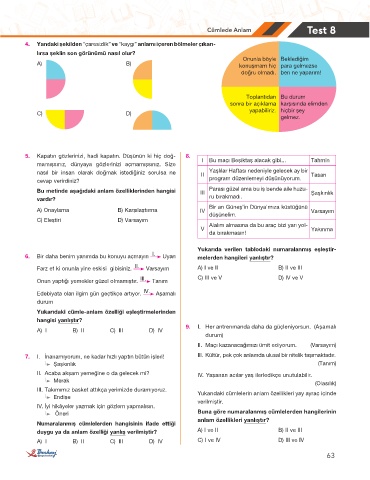 III. Takımımız basket attıkça yerimizde duramıyoruz. Yukarıdaki cümlelerin anlam özellikleri yay ayraç içinde