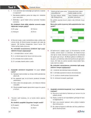 yıl artıyor. 7. Aşağıdaki cümlelerin hangisinde “kaygı” anlamı bulun-