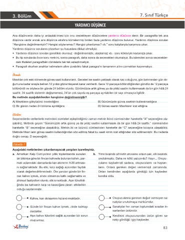 düşünce vardır ancak ana düşünce etrafına kümelenmiş birden fazla yardımcı düşünce bulunur. Yardımcı düşünce soruları