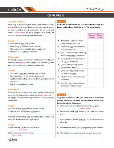 1. BÖLÜM 7. Sınıf Türkçe