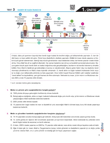 TEST 3 KADER VE KAZA İNANCI III 8SBDIN-004 1. ÜNİTE