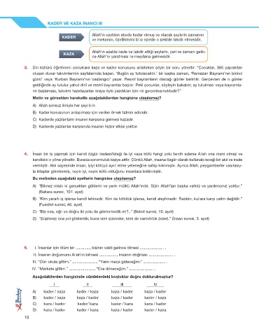 3. Din kültürü öğretmeni çocuklara kaza ve kader konusunu anlatırken şöyle bir soru yöneltir: “Çocuklar, 365 yapraktan