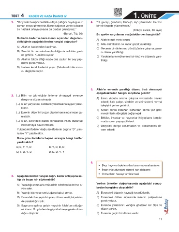 D) Başına ne gelirse gelsin hepsinin Allah’tan olduğu- C) Evrende yaratıcının varlığını gösteren bir ölçü ve